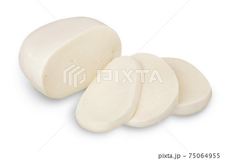 Mozzarella cheese sliced isolated on white background with clipping path and full depth of field