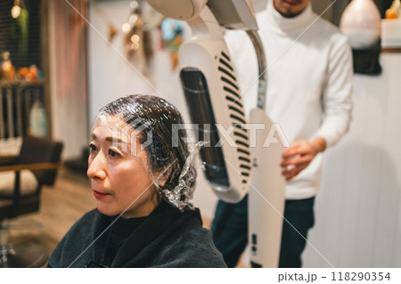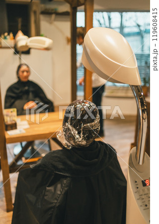美容室シーン ヘアブリーチ ハイトーンカラー perming写真素材