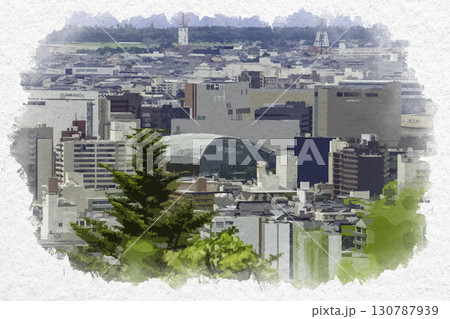 水彩画風 金沢市街地 金沢駅周辺 石川県金沢市