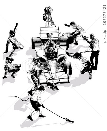 Drawing of a racing car pit stop
