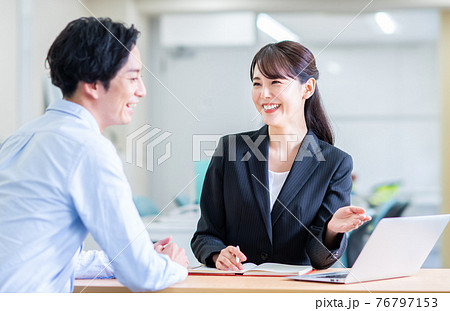 ビジネスウーマンに相談する若い男性