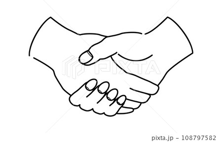 手を強く握り握手を交わす二人の手のシンプルな線画イラスト