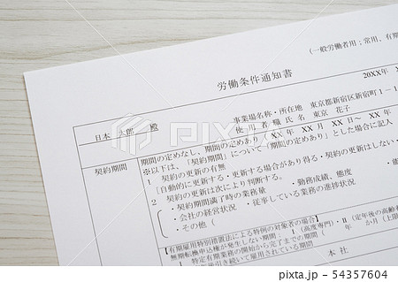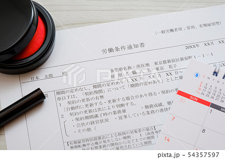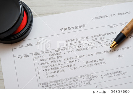 【写真素材】労働条件通知書 雇用条件 労働条件 就職 転職