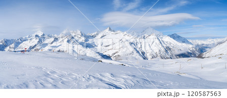 Place for skiing. Winter sport. Winter mountain landscape. Wallpaper or background.