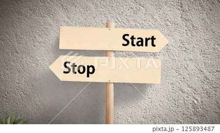 StartとStopの木製の道しるべ中央_generative ai_ワイド