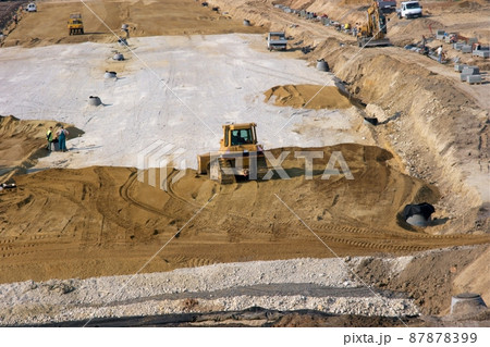 Excavator and a bulldozer work at a construction site