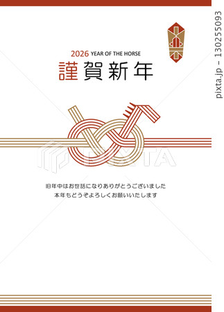 2026午年年賀状 おしゃれでシンプルな馬の水引 謹賀新年