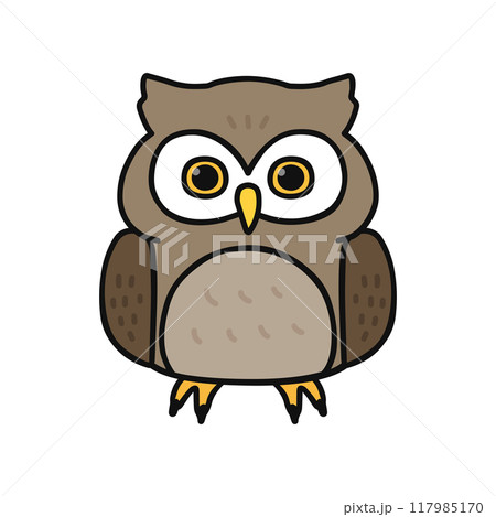 丸い目が特徴的なフクロウのシンプルな線画イラストアイコン