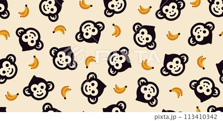 猿とバナナのパターン 背景素材