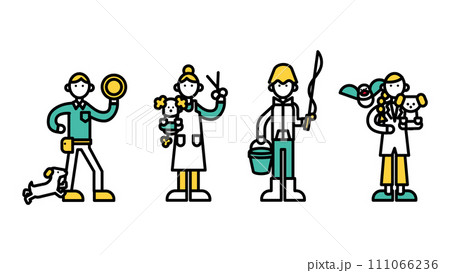 シンプルな線画の様々な専門店で働く人物(B)のイラスト