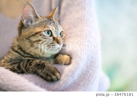 朝陽は気持ちいいにゃあ。まだ眠いですにゃ。猫イメージ素材