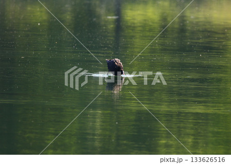Tufted Pochard Floating on Green Lake Near Regensburg in Springtime