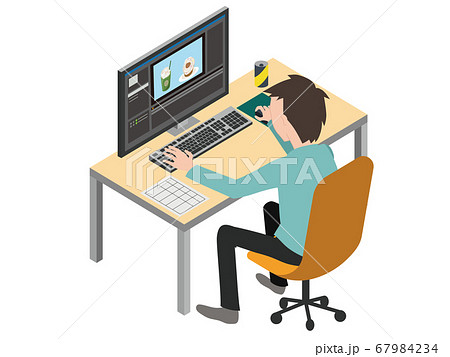 動画編集をする男性