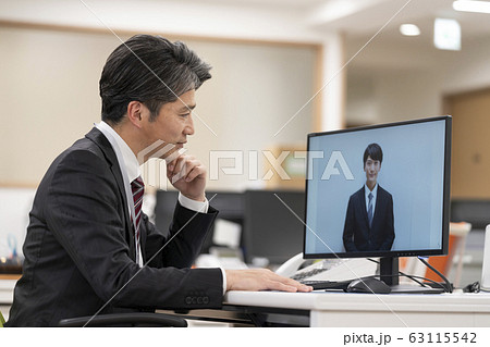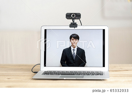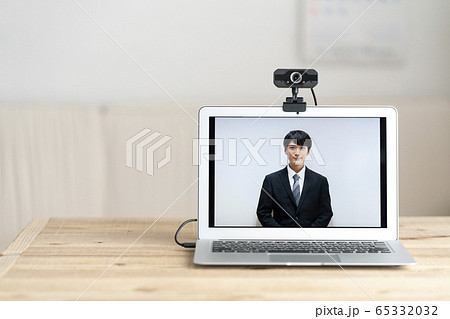 ウェブカメラを使ってオンライン面接を受ける若い男性 イメージ