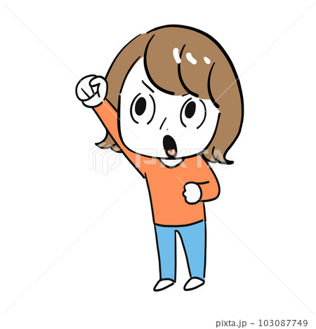 イラスト素材|手を上げているエプロンを着た女性の単品素材(怒る/強気)