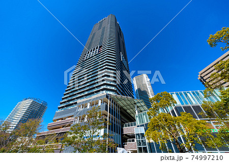 日本の東京都市景観 集合住宅と店舗で構成される超高層複合ビル「勝どきビュータワー」と直結の勝どき駅