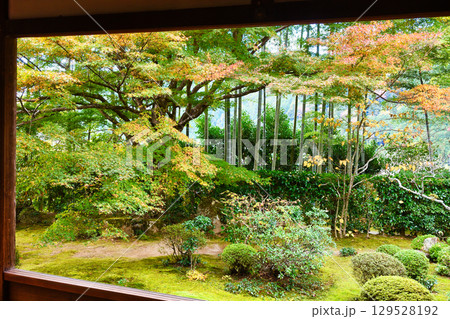 大原 宝泉院 囲炉裏の部屋から見た秋の美しい庭園(京都市左京区)
