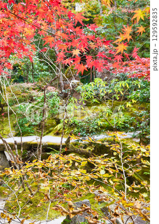 大原 宝泉院の石仏と散りもみじ(京都府京都市左京区)