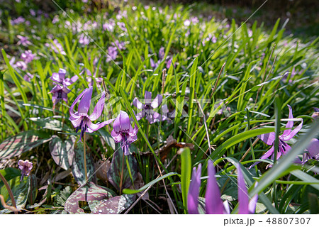 那岐山への登山道脇のヒノキ林と紅葉 岡山県勝田郡奈義町