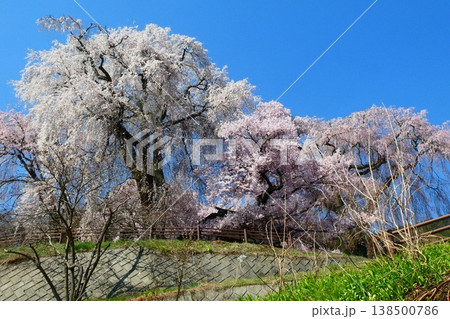 長野県伊那市高遠町勝間 薬師の桜と呼ばれる勝間薬師堂のシダレザクラ