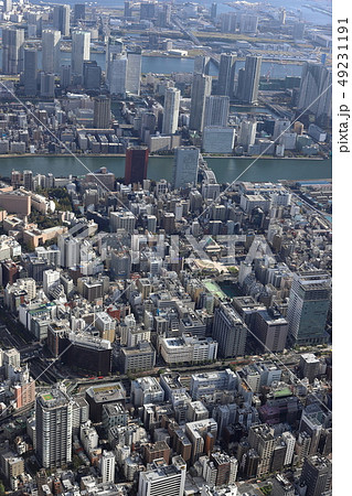 東銀座上空から勝どき方向を空撮