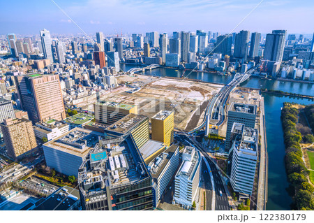 日本の東京都市景観 令和7年・新時代へ。築地市場跡地などを望む。再開発へ…=1月23日