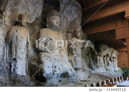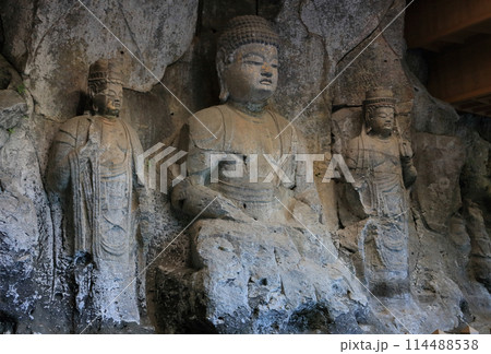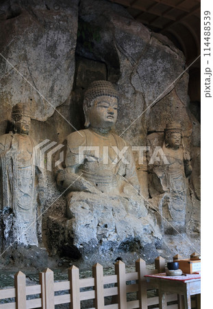 国宝臼杵石仏、ホキ石仏第二群、第一龕「阿弥陀三尊像」