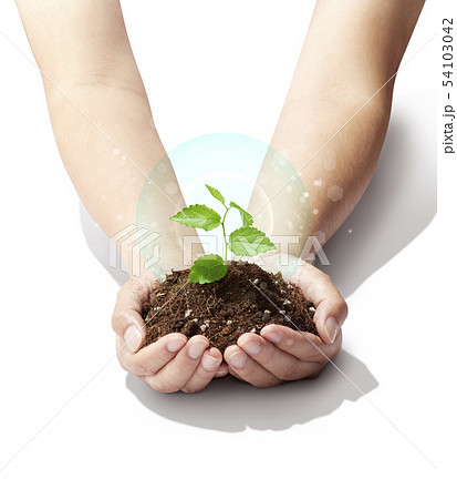 手のひらの中の植物-新芽-若葉-成長-未来
