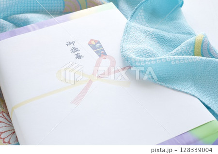 風呂敷に包んだお歳暮の贈り物と日本茶