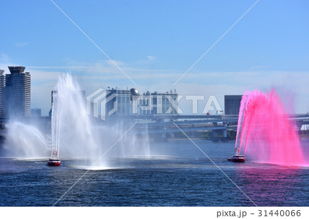 東京消防庁高輪消防署の化学消防艇「かちどき」によるカラー放水