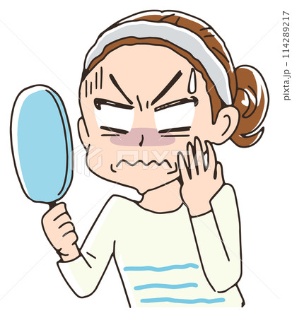 肌トラブル 小じわに悩む女性のイラスト