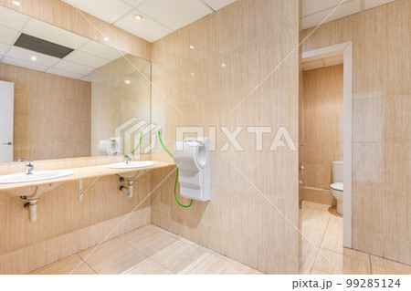 Public sinks, Handwashers for people using public toilets, Public toilets and hygiene concept.