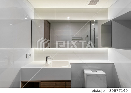 Luxury Interior bathtoom, Studio room type of condominium or apartment, service apartment and Accommodations Concept