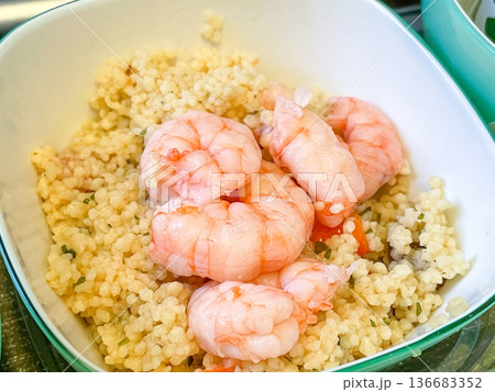 エバー航空 パリ~台北エコノミークラス機内食(エビ入りクスクスのサラダ)