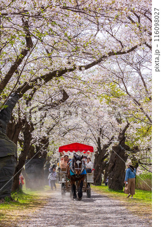 日本さくら名所100選 岩手 北上展勝地の観光馬車
