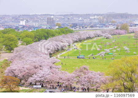 北上展勝地さくらまつり 満開の桜 春 観光名所 自然 青空 晴れ カラフル 東北地方