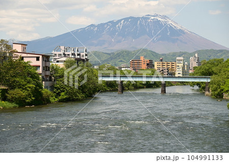 盛岡の春 夕顔瀬橋から見える岩手山