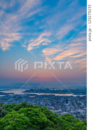 【福岡県】高塔山から見る北九州市・若戸大橋と街並み 夜明け