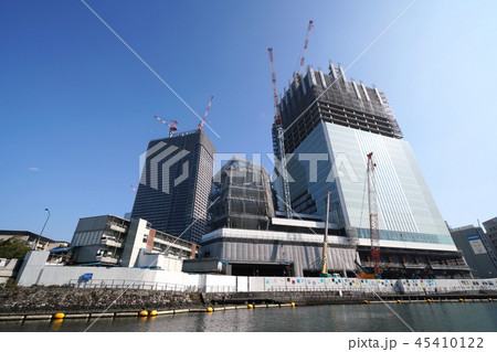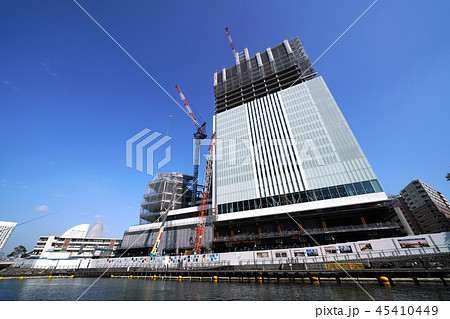 日本の横浜都市景観 建設中の横浜市役所新庁舎や建設中の超高層マンションなどを望む