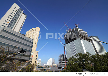 日本の横浜都市景観 建設中の横浜市役所新庁舎などを望む