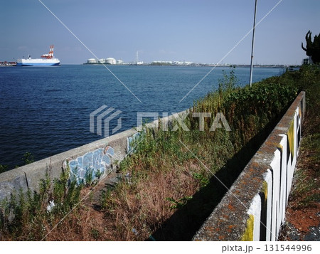 大阪 泉大津 助松埠頭北岸壁と大阪湾、神戸市街地(春)