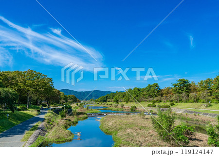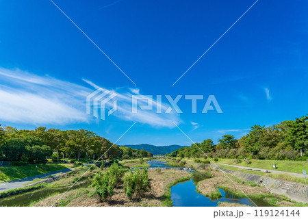 秋晴れの京都市賀茂川の北大路橋からの眺め