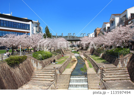 延伸開業した北大阪急行電鉄新駅箕面萱野駅の駅前広場と桜並木