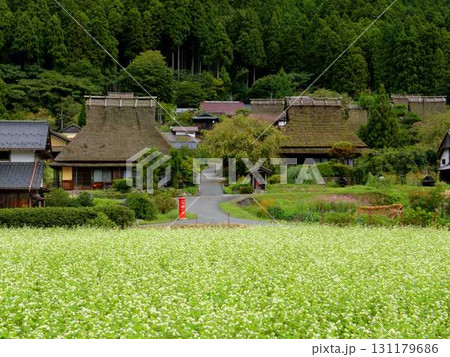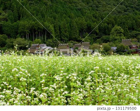 京都府北部の南丹市美山町にあるかやぶきの里の前に広がったソバ畑