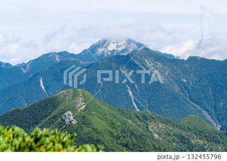 北岳山荘への登山道から見る間ノ岳 南アルプスの北岳登山