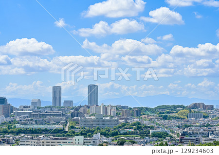 都市風景 大阪府高槻市街並み 青空とビル