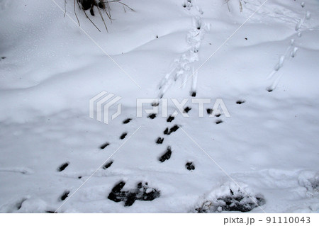 深山~るり渓ハイキングコース 1月は雪道 鹿の足跡