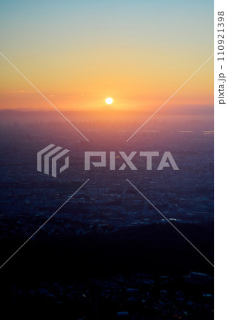 京都府最南端木津川市城山台からの夕景 山際の夕焼けと紺色の空 木津の街を見下ろす高台にて#27