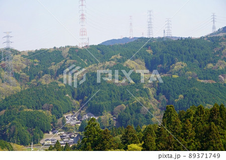 大阪 豊能町 光明山 法輪寺から見た豊能の山村(南東方向、川尻、晩春)