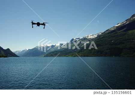 ハダンゲンフィヨルドに向かって飛び立つドローン
